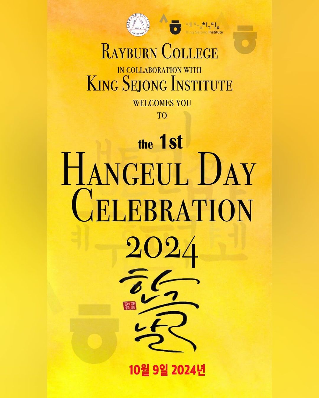 On the 9th of October, 2024, Rayburn College, in collaboration with the King Sejong Institute, celebrated the 1st Hangeul Day. This event marked the celebration of the Korean alphabet, Hangeul, and was a significant occasion to honor Korean culture and language.