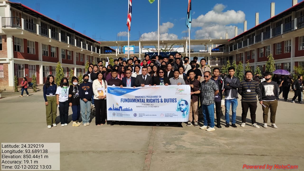 Awareness programme on Fundamental Right & Duties, 2nd December, 2022 part of observation of Constitution Week (26th November - 2nd December, 2022). Organised by District Legal Services Authority, CCPur, sponsored by Manipur State Legal Services Authority in collaboration with Department of Political Science, Rayburn College.