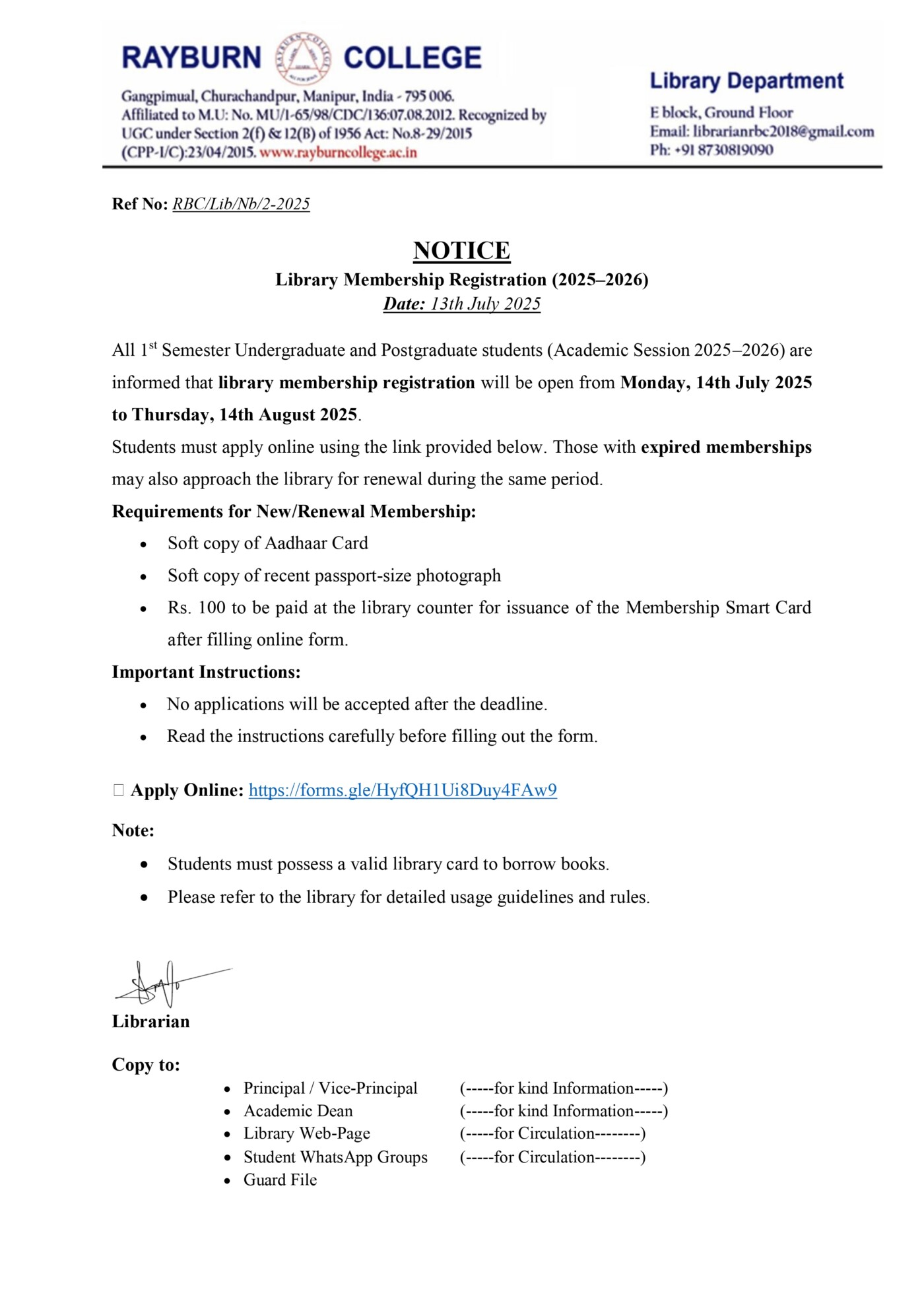 Library Membership Registration (2025–2026)