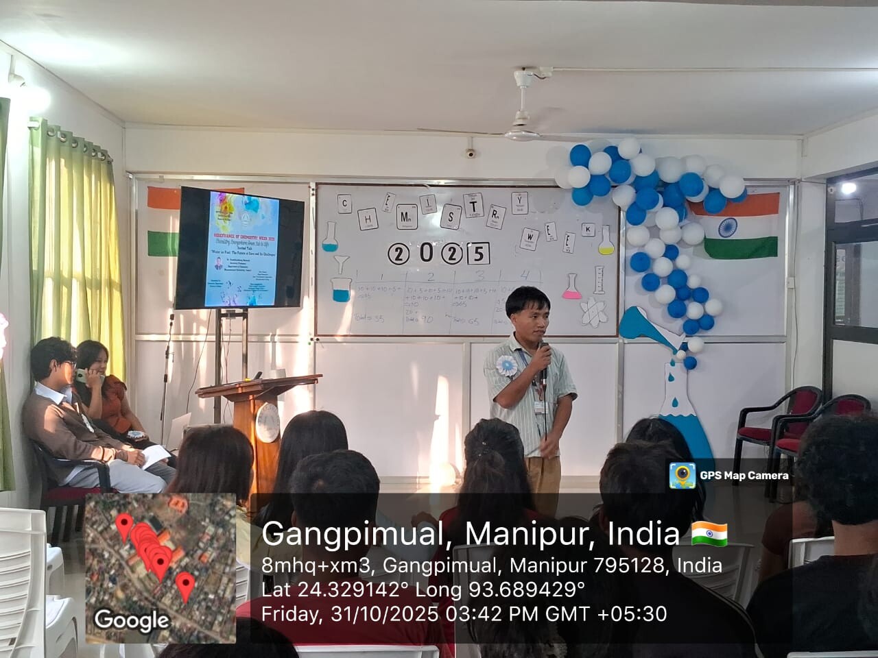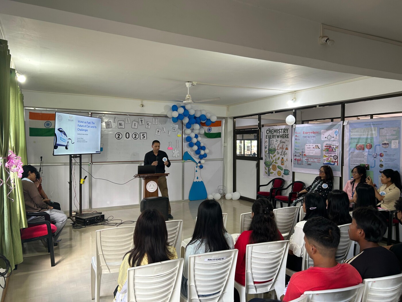 The highlight of the event was an insightful talk by Dr. Siamkhanthang Neihsial, Assistant Professor, Department of Chemistry, Dhanamanjuri University, Imphal. His presentation on “Water as Fuel: The Future of Cars and Its Challenges” offered students an engaging look into hydrogen energy, sustainable fuel alternatives, and the scientific hurdles that need to be addressed.