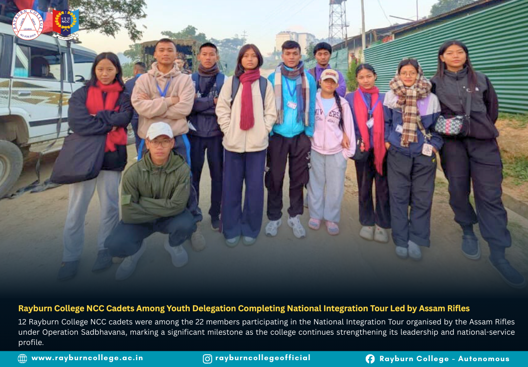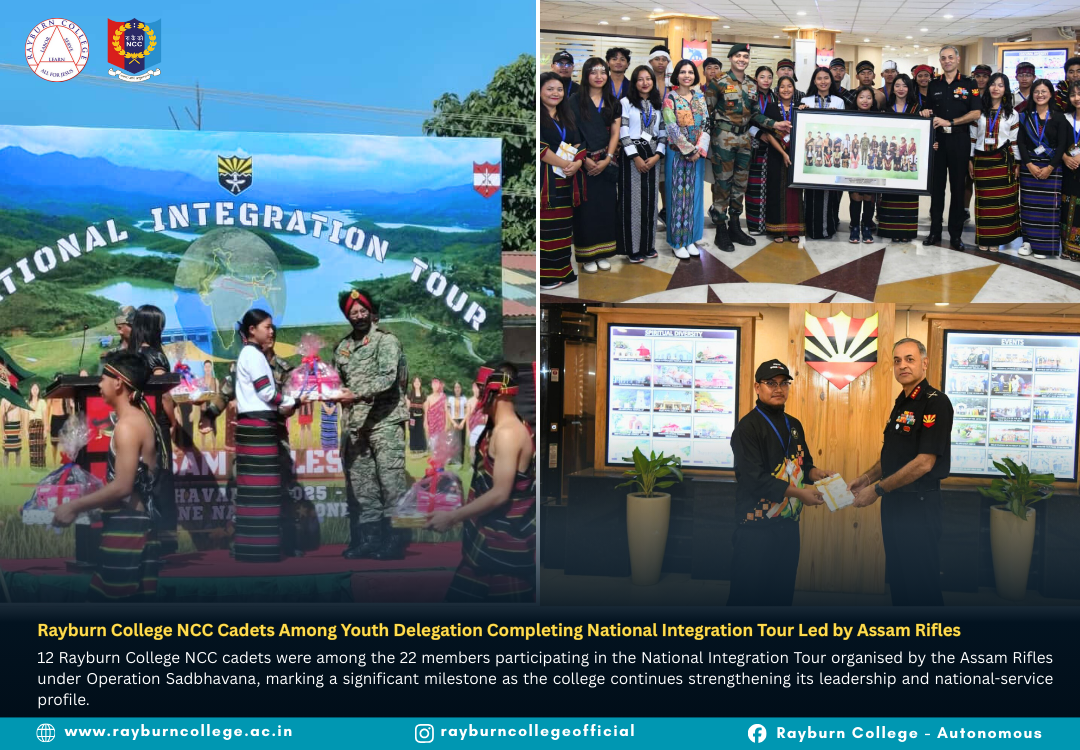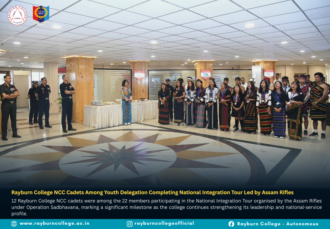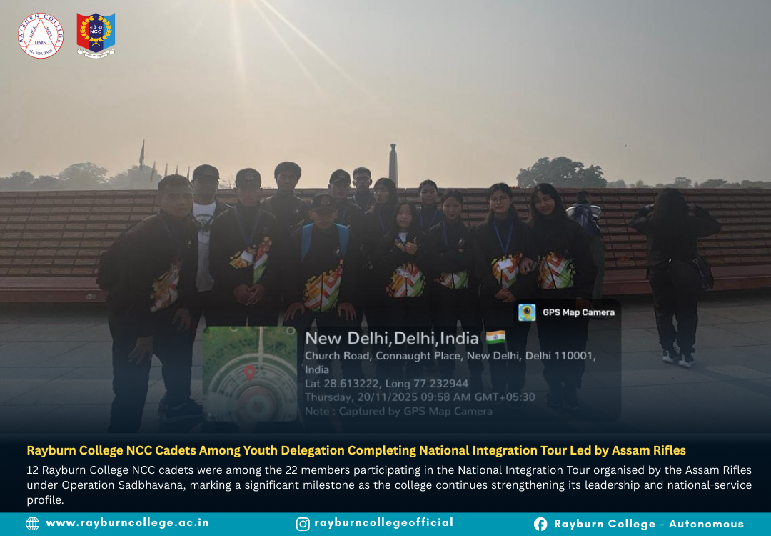 A youth delegation from Churachandpur district successfully completed a multi-city National Integration Tour held from 15–30 November 2025, organised by the Assam Rifles under Operation Sadbhavana. The delegation consisted of 22 students, including 12 Rayburn College NCC Cadets, marking a proud milestone as the college continues strengthening its leadership and national service culture. The group was accompanied by two teachers and Assam Rifles personnel throughout the journey.